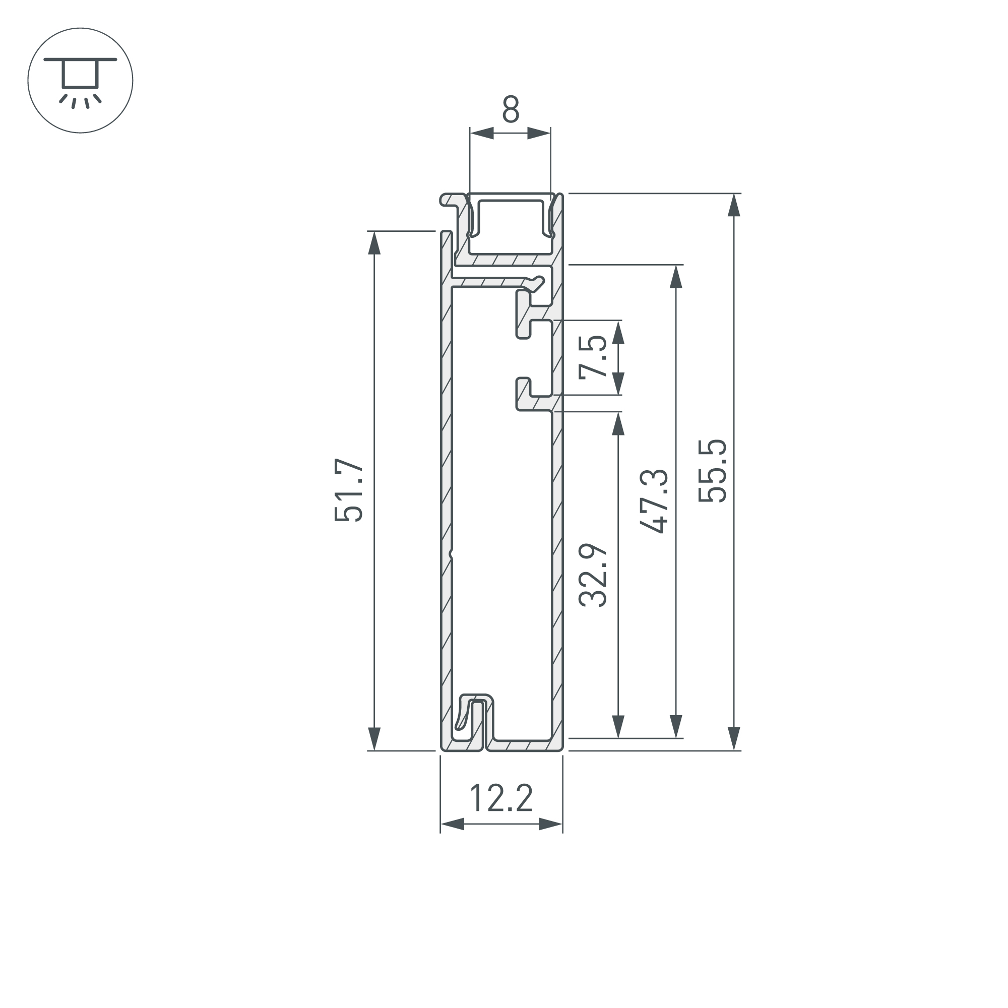 Накладной двухкомпонентный алюминиевый профиль-плинтус с кабель-каналом белого цвета для контурной подсветки помещения. Габаритные размеры этого профиля составляют 2000 мм в длину, 12,2 мм в ширину и 55,5 мм в высоту. Площадка для установки светодиодных лент позволяет использовать ленту шириной до 8 мм и мощностью до 30 Вт/м. Это обеспечивает гибкость в выборе светодиодных лент и создает потрясающие световые решения.