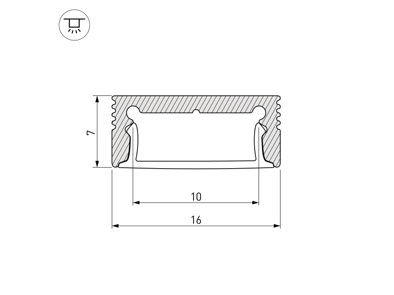 Габаритные размеры (L×W×H): 2000 x 16 x 7 мм. Ширина площадки для ленты 10 мм.