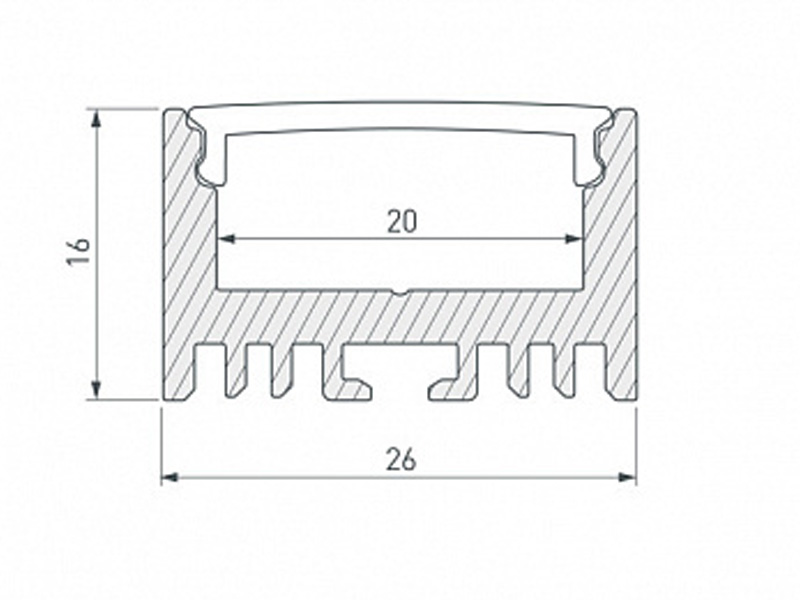 Габаритные размеры (L×W×H): 2000 x 26 x 16 мм. Ширина площадки для ленты 20 мм.