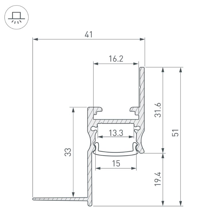 Профиль со скрытым фланцем встраивается в потолки и потолочные ниши из гипсокартона, образуя теневой зазор между потолком и стеной. Такое решение создает визуальный эффект потолка, парящего в воздухе с мягким свечением по периметру комнаты.