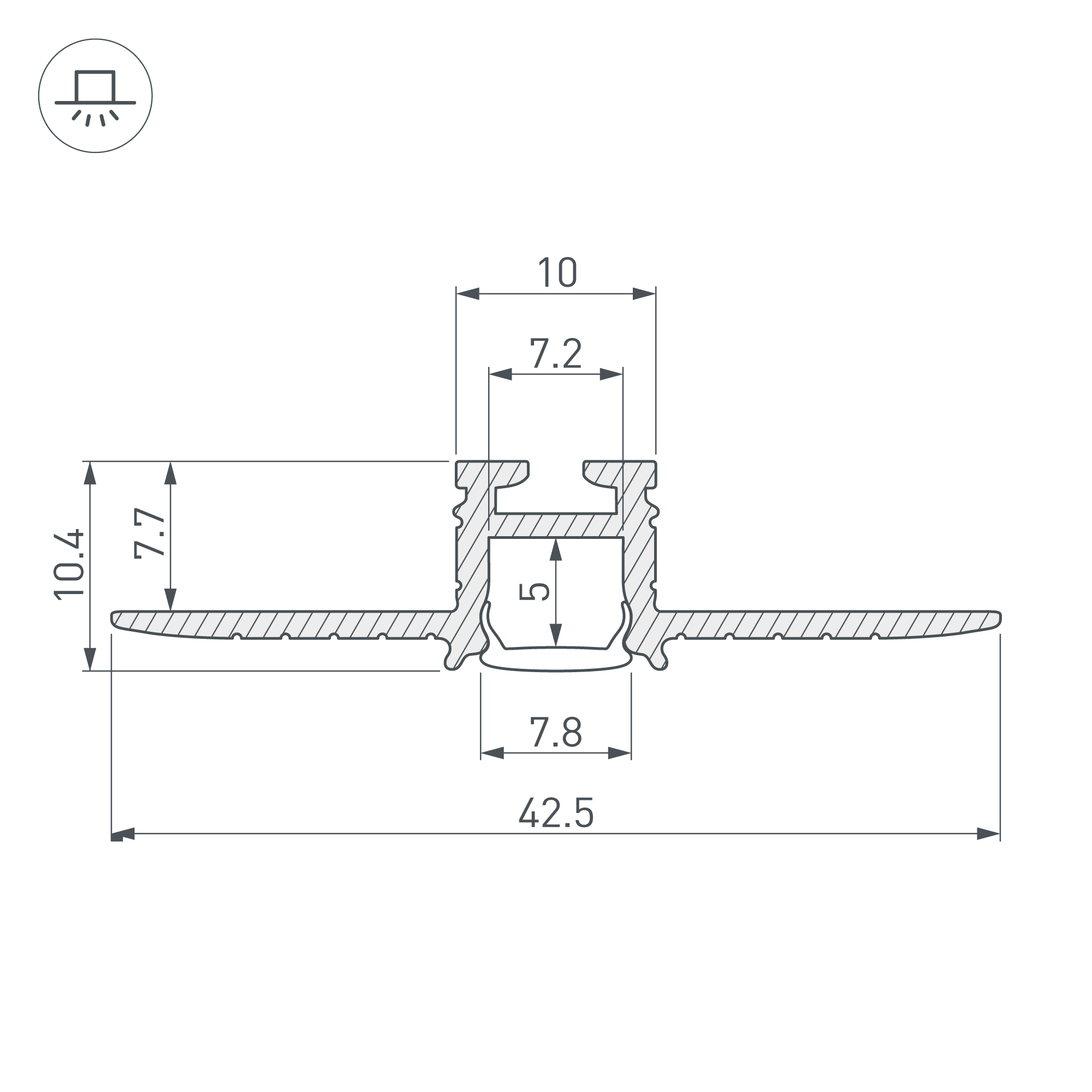 Ширина световой линии 7,8 мм. Ширина площадки для ленты 7,2 мм.