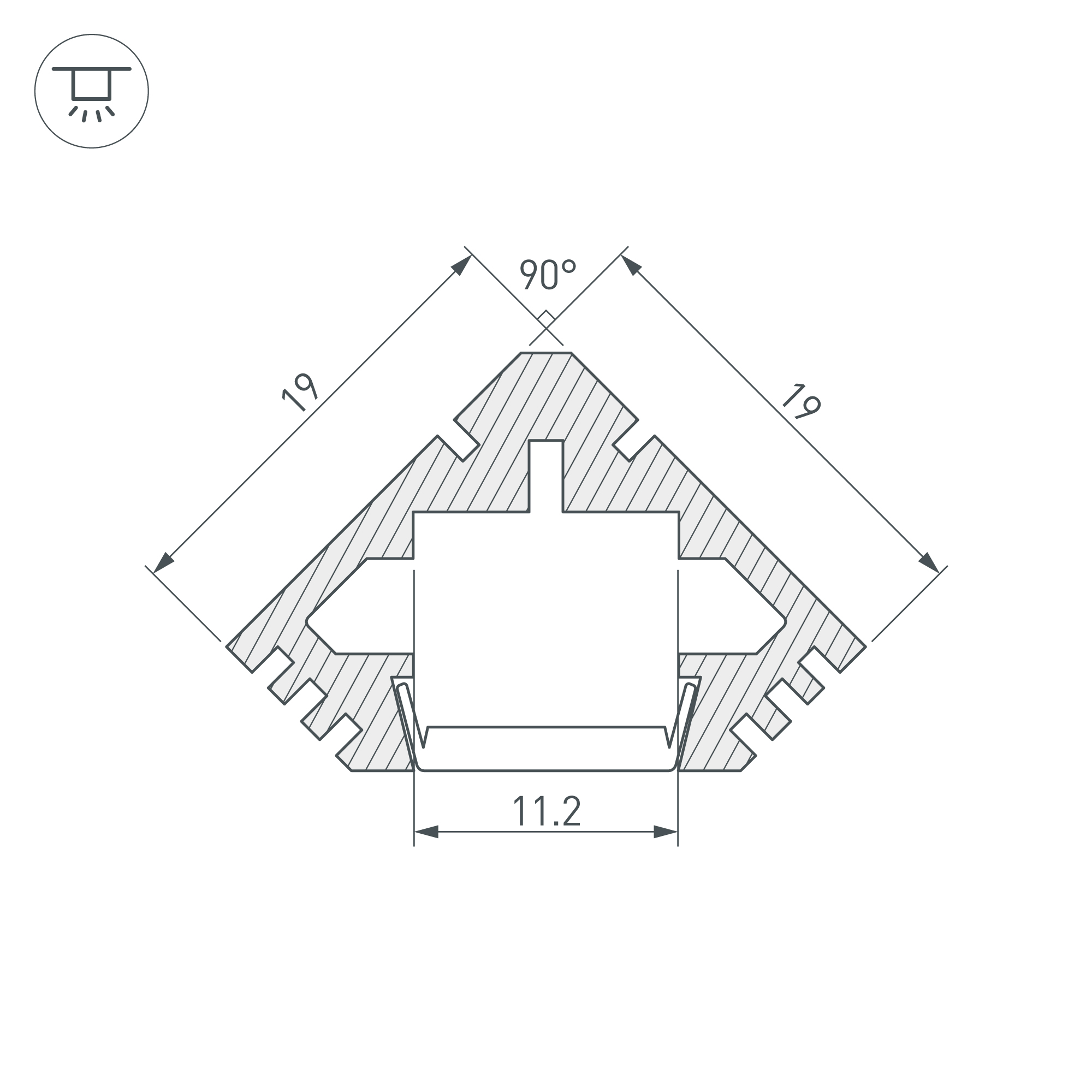 Габаритные размеры (L×W×H): 2000 x 19 x 19 мм. Ширина площадки для ленты 11,2 мм.