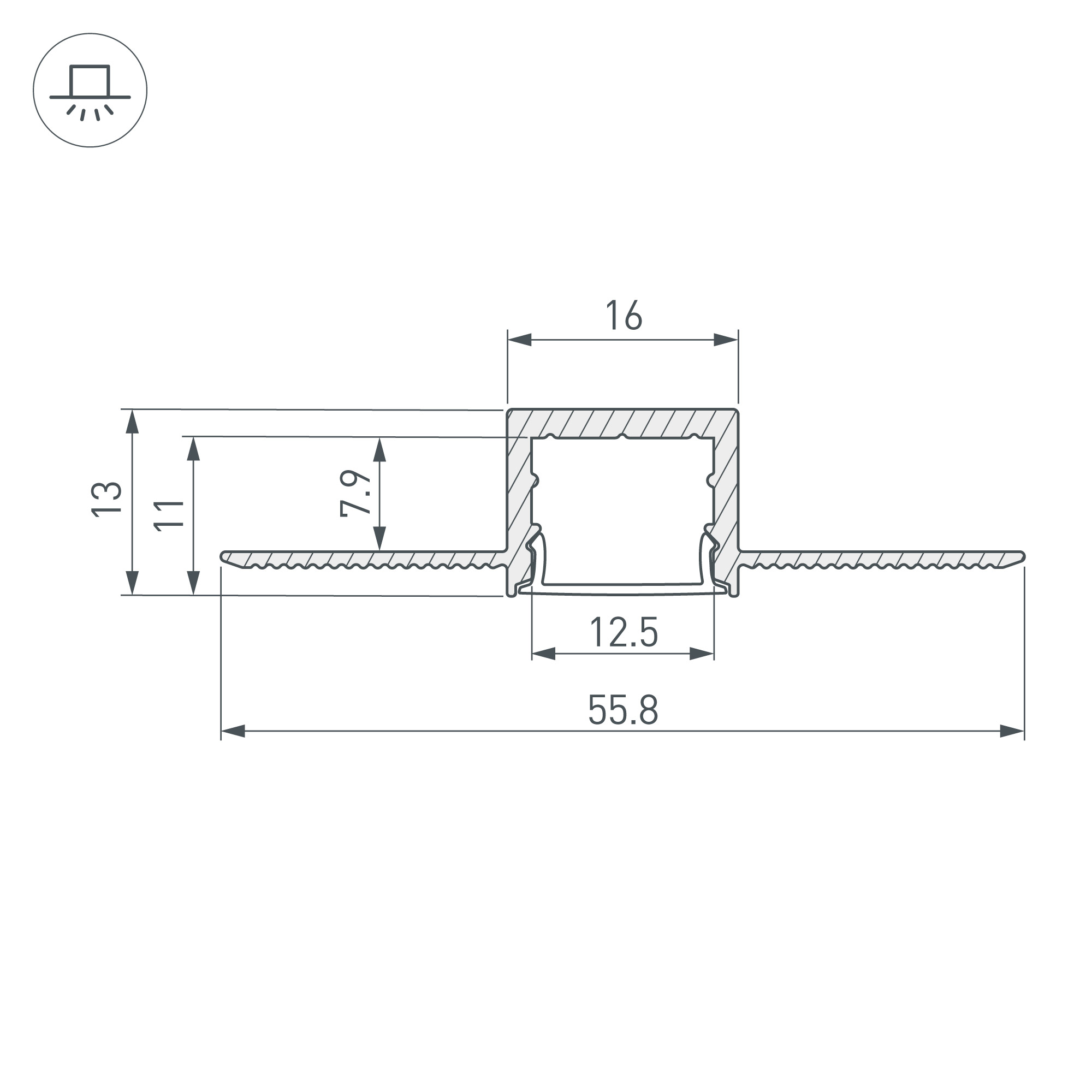 Ширина монтажной площадки для ленты, mm